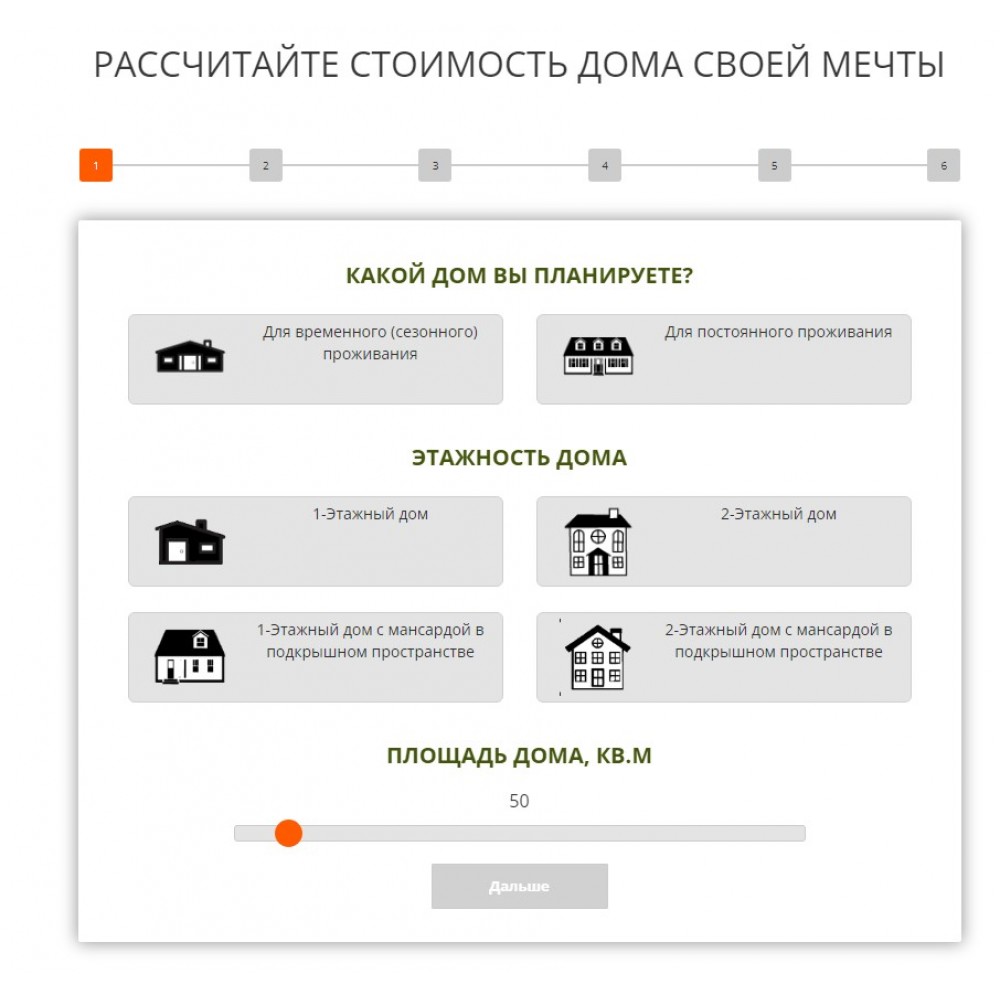 Квиз конфигурации дома от веб-студии Максвебсайт г. Камышлов