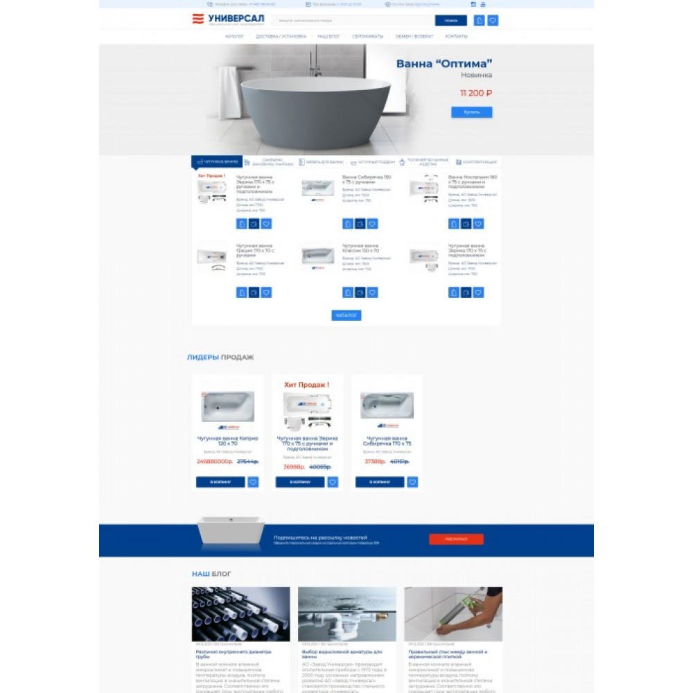 Интернет-магазин чугунных ванн и сантехники Универсал от веб-студии Максвебсайт г. Камышлов