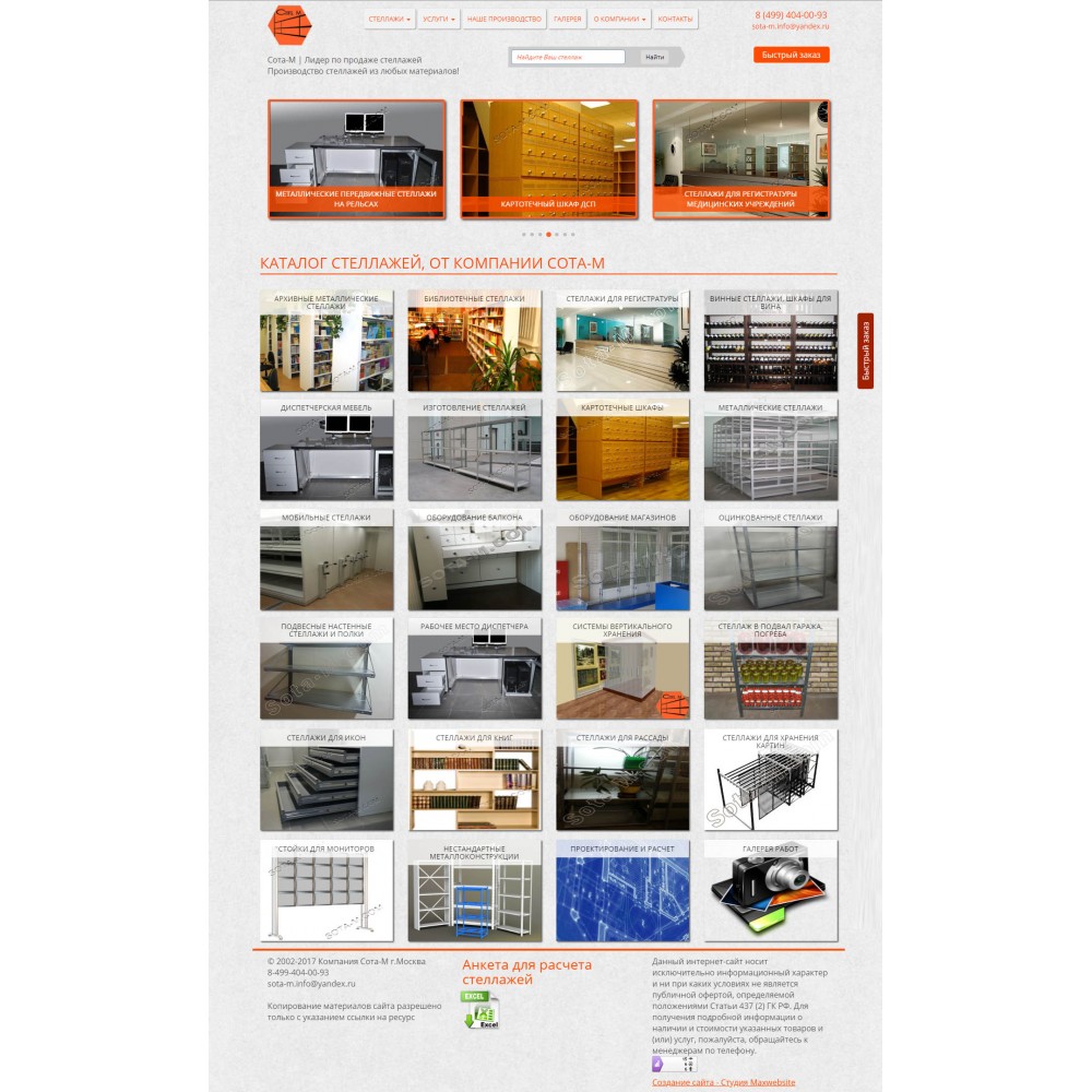 Сайт каталог, по продаже металлических стеллажей, от веб-студии Максвебсайт г. Камышлов