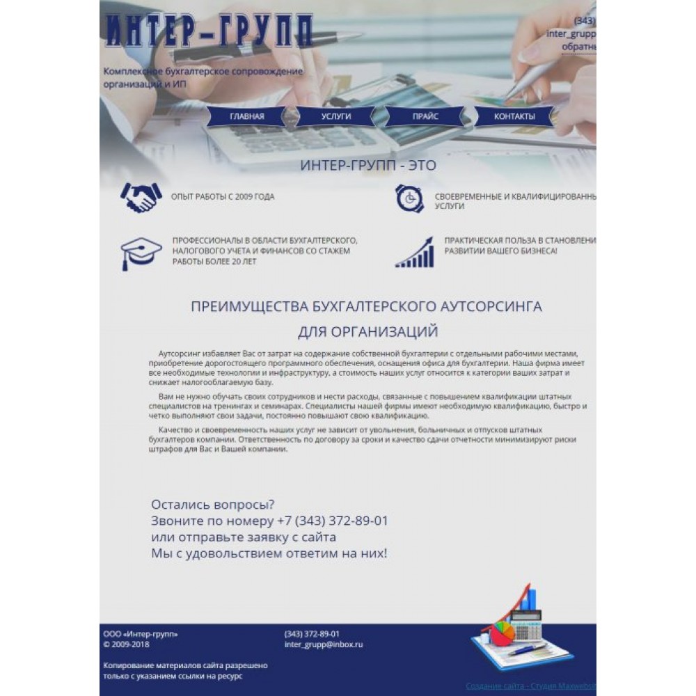 Сайт-визитка бухгалтерской компании г.Екатеринбург от веб-студии Максвебсайт г. Камышлов