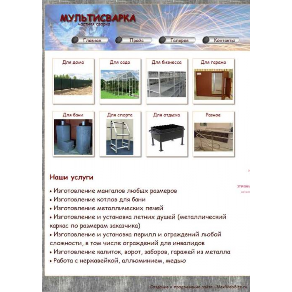 Сайт визитка частного сварщика г.Москва от веб-студии Максвебсайт г. Камышлов